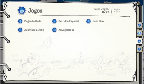 Esses ai,ai tem o meu preferido,quebrar o ice bergue,mais não é bem QUEBRAR o ice bergue,é só você ir lá com mais 30 penguins,dançar com o chapéu de mineiro e você ganha o selo...agora você passa a página :
