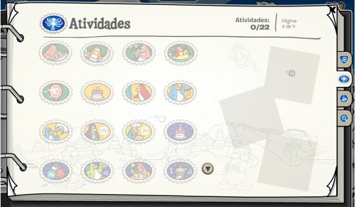 Ai aparece o livro de selos!Ai você clica ali no botão e o livro abre: